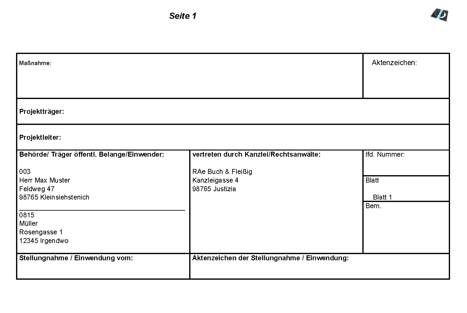 Sind mehrere Adressen vom Typ „Einwender“ zu einem Einwandsdokument vorhanden,